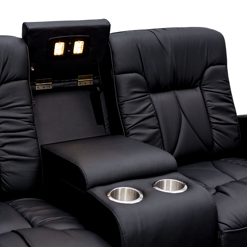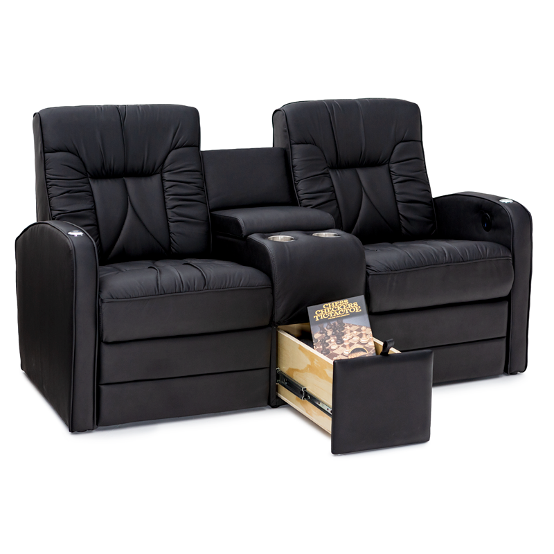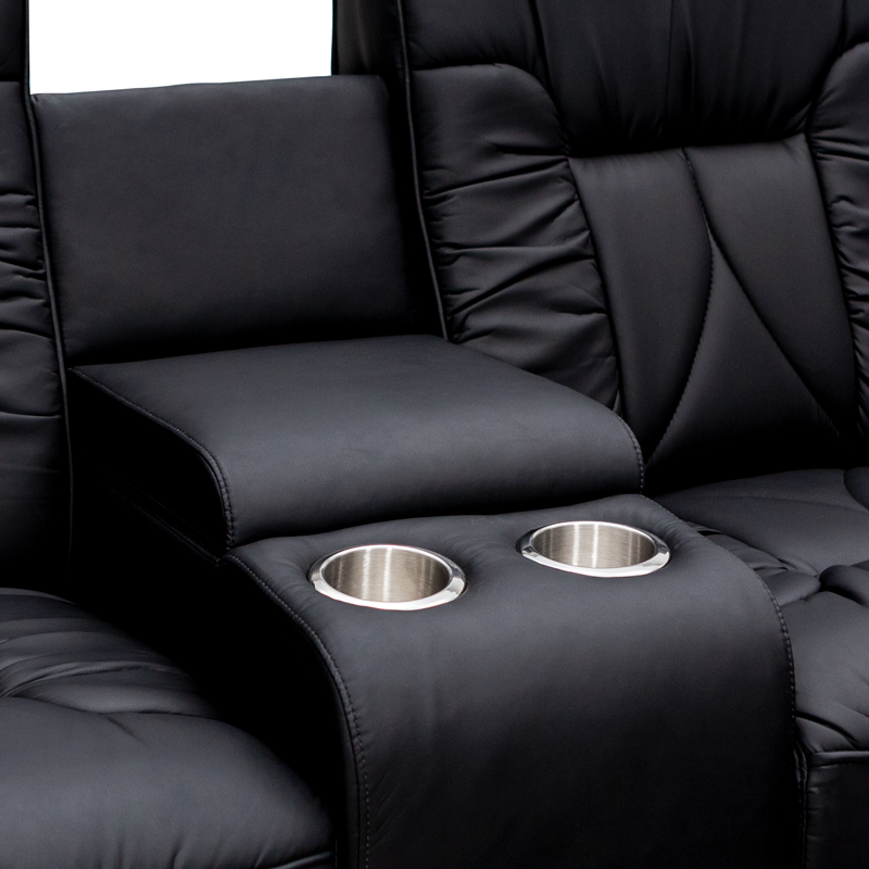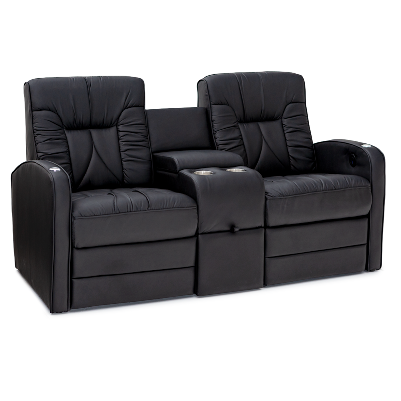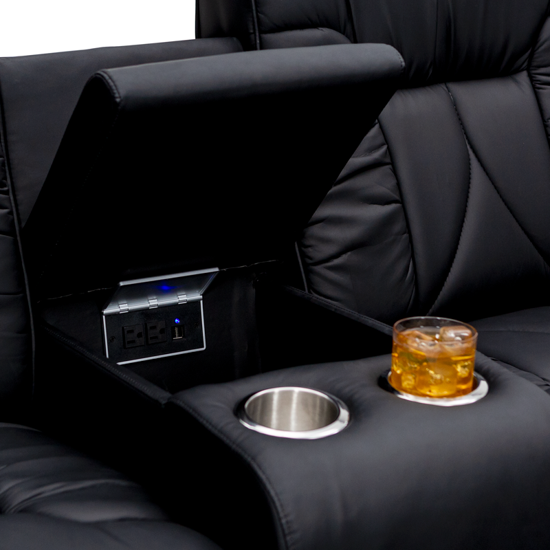 Qualitex De Leon RV Loveseat w/ Storage Console, Vinyl, Power Recline, Midnight Black
