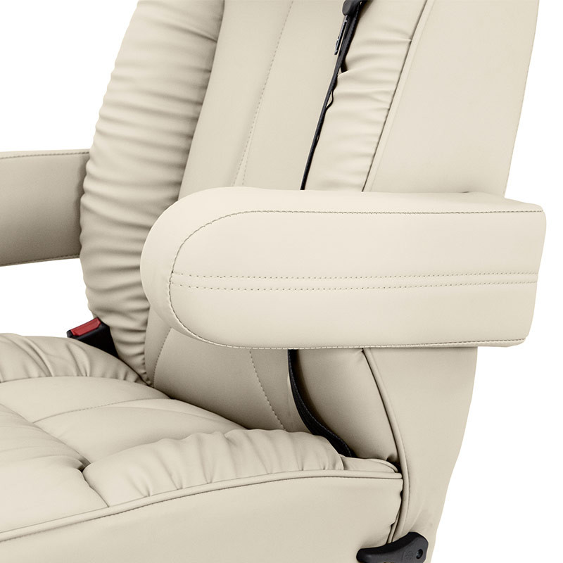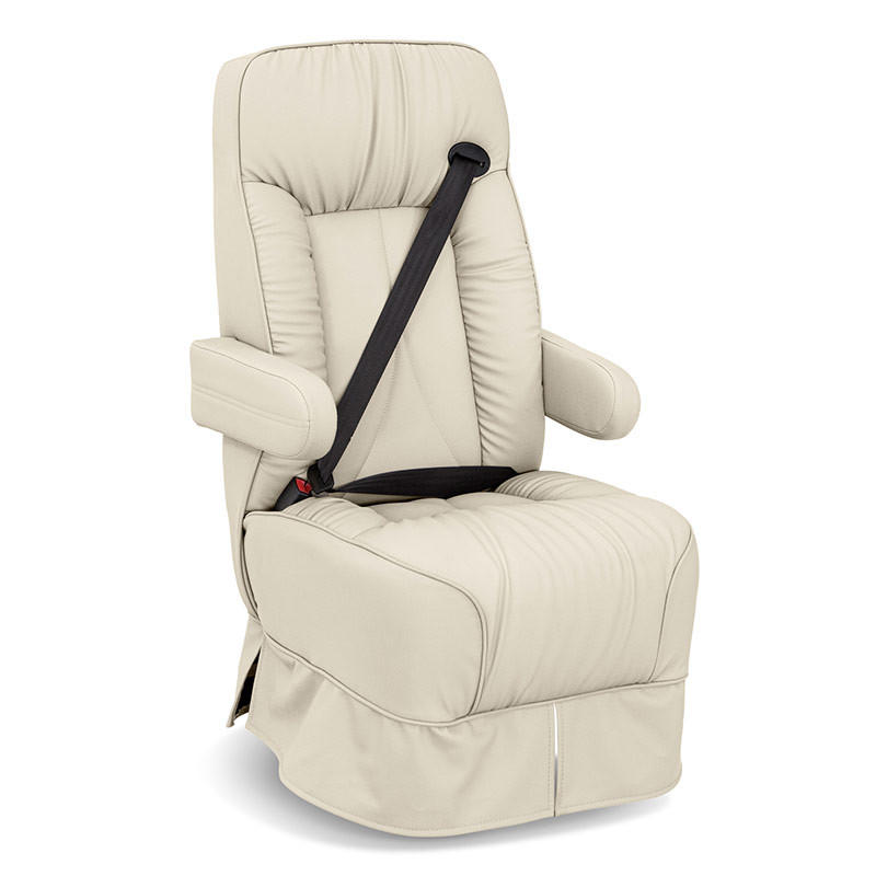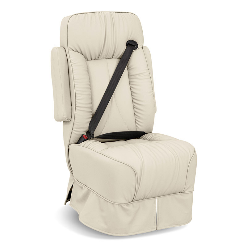Qualitex has spared no expense in making the De Leon Captain's Chair the best upgrade for your RV on the internet. Crafted with Ultimate Leather, this luxurious material is renowned for its durability and functionality. It's easy to clean and offers robust support that withstands wear and tear, while being highly resistant to stains and spills. Additionally, the integrated seatbelt feature provides an added layer of safety and security, making your travels even more comfortable and worry-free.