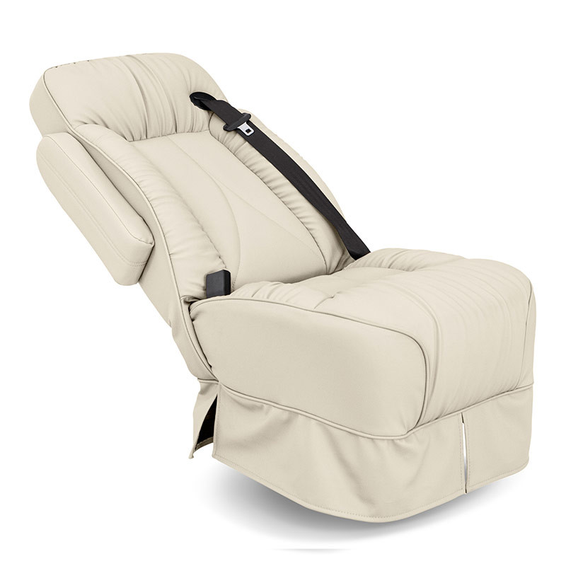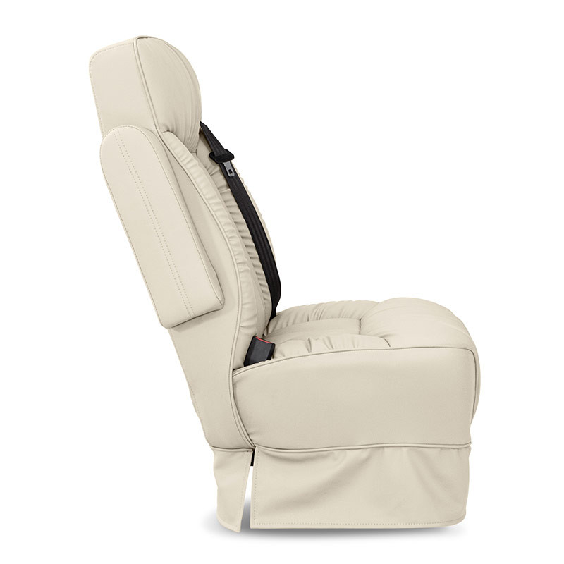 Ready to elevate your comfort on your next road trip? The Qualitex® De Leon IS RV Captain's Chair is expertly crafted to combine luxury and functionality, making it the perfect choice for your RV. This premium captain's chair features a multi-position recline backrest, soft leather bolstering with precision piping, and high-definition foam layers with pocketed springs, ensuring that you can update your vehicle's interior with ease.