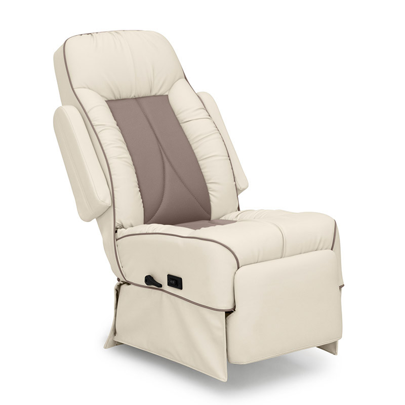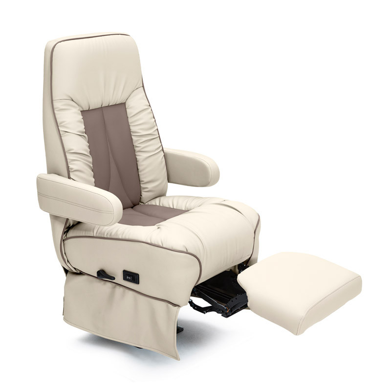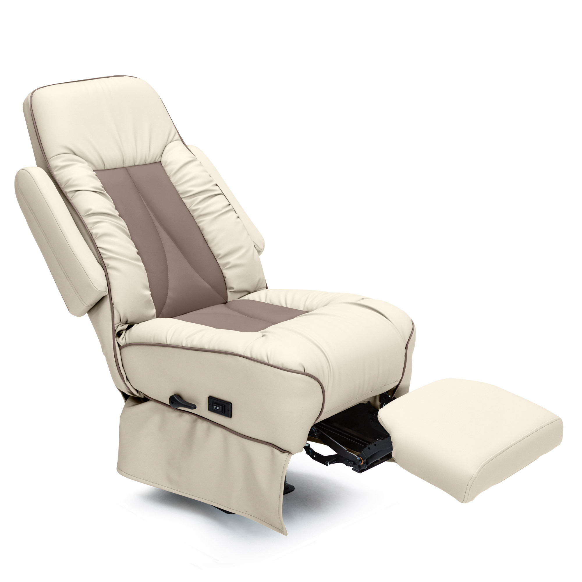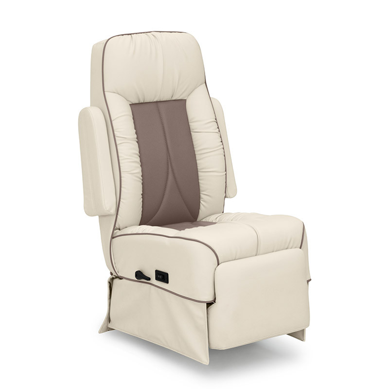 Qualitex De Leon LX RV Ultimate Leather Captain Chairs, Power Legrest, Bisque & Light Antelope