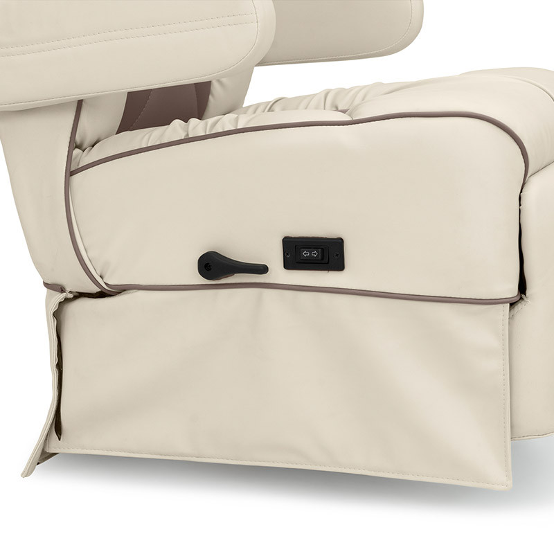 A motorized legrest can be extended to your preferred position with the push of a button.