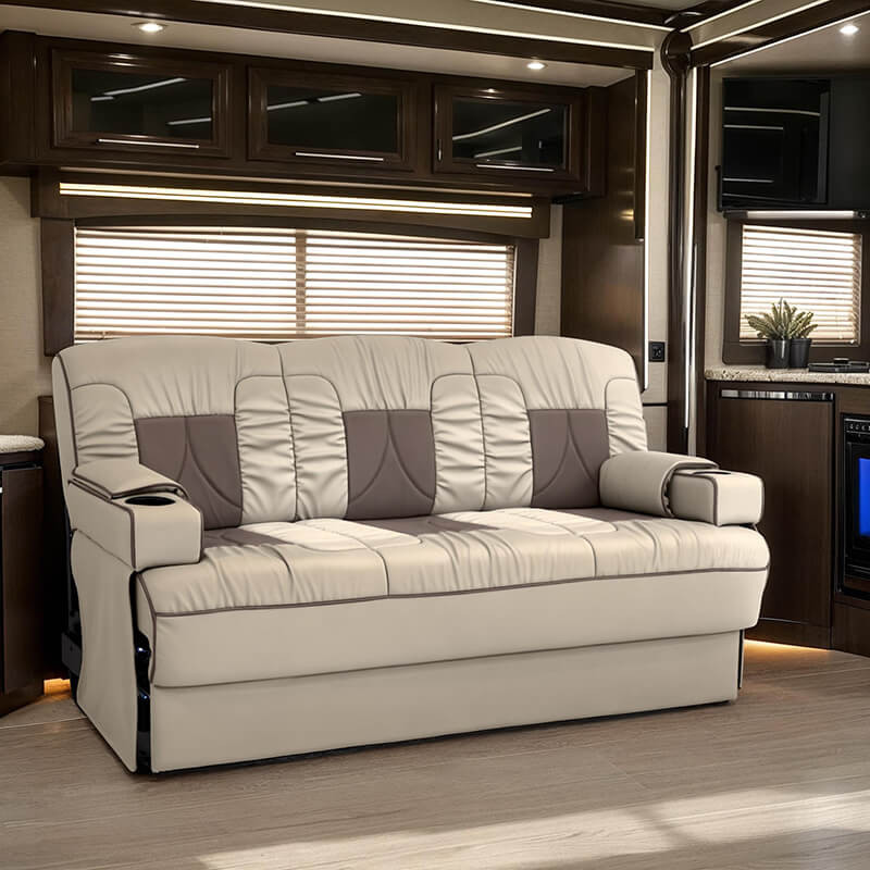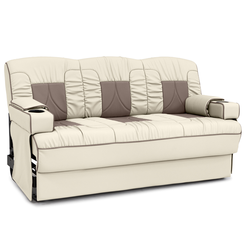 Qualitex De Leon SL RV Sofa Ultimate Leather Bed, 68" Wide, Bisque & Light Antelope