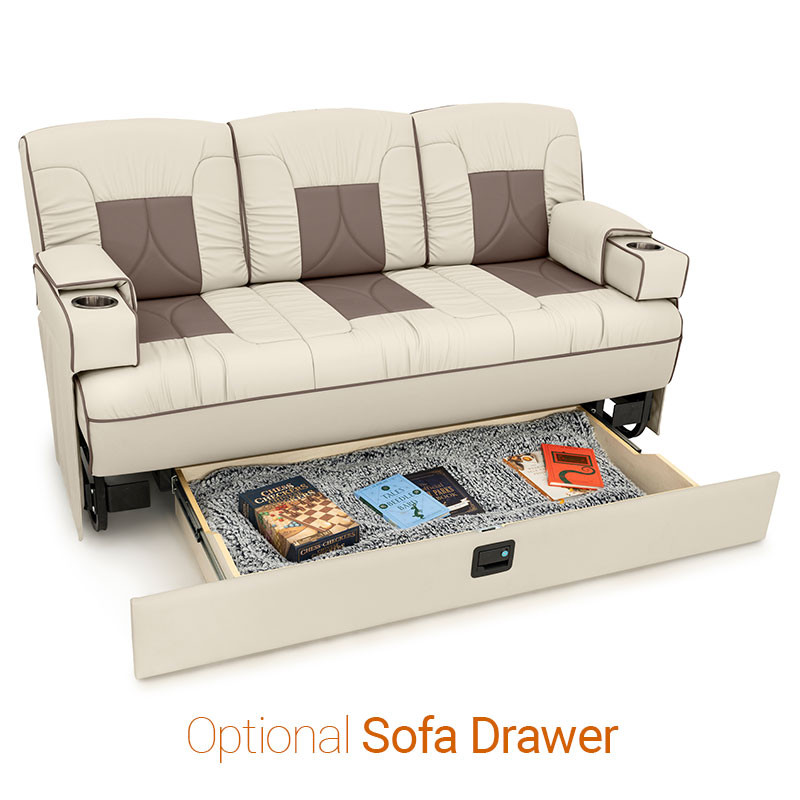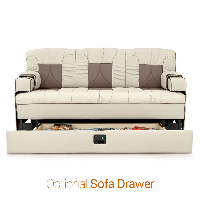 Enhance your RV with the De Leon SL RV Sofa Bed, featuring a wall hugger design that maximizes space efficiency. This versatile sofa bed includes a removable padded slide armrest with an integrated cupholder, a plush seating surface that cradles your body, and a fold-out sofa bed large enough for two people.Our ultimate material features heavy-duty, commercial-grade ultimate leather with exceptional weather and fade protection. With durable construction and a no-peel or crack guarantee, it remains vibrant and reliable in the toughest conditions. The De Leon SL Sofa Bed is the perfect choice for RV living.