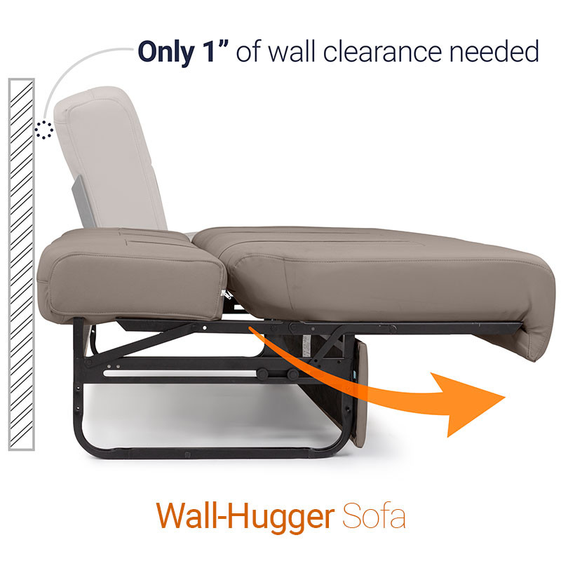 Maximize your space with this wall-hugger design needing only one inch clearance from the wall to open up.