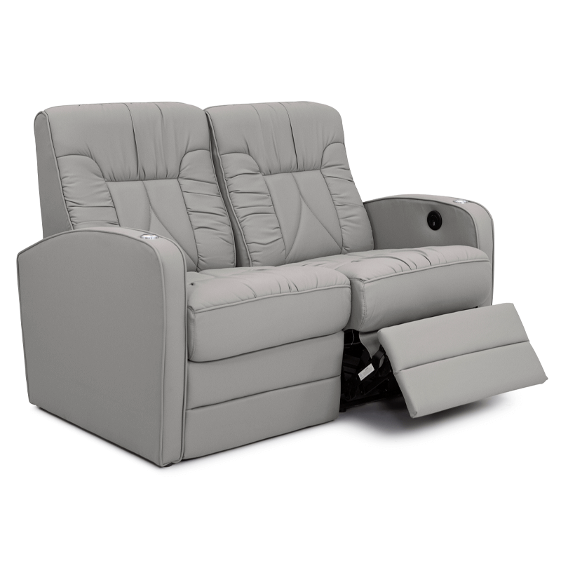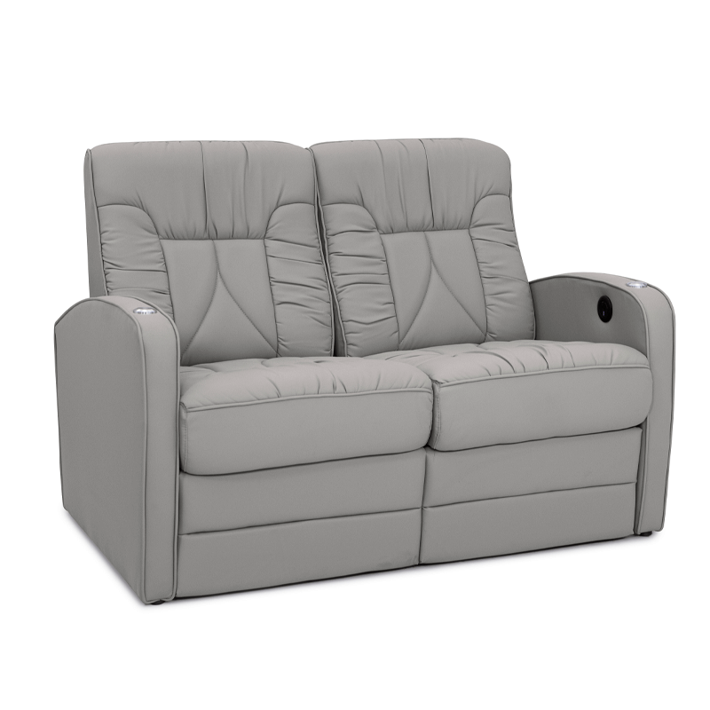 The De Leon RV Recliner Loveseat brings together plush comfort and sophisticated design, making it a standout in the De Leon series. Available in elegant two-tone or solid color options, it adds both warmth and style to your RV’s interior. Its innovative wall-hugger mechanism lets you place it just 1” from the wall while still enjoying a full recline. Blending luxury with practicality, the De Leon series continues to set the benchmark for premium RV furniture.
