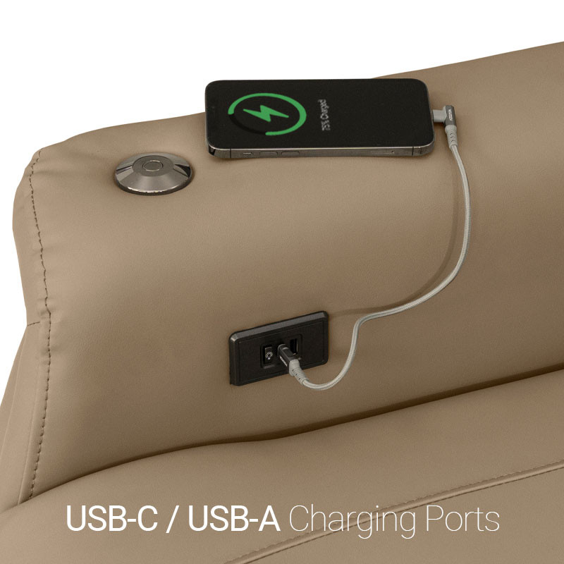 This sofa is equppied with both charging ports to convieniently charge your electronic devices.