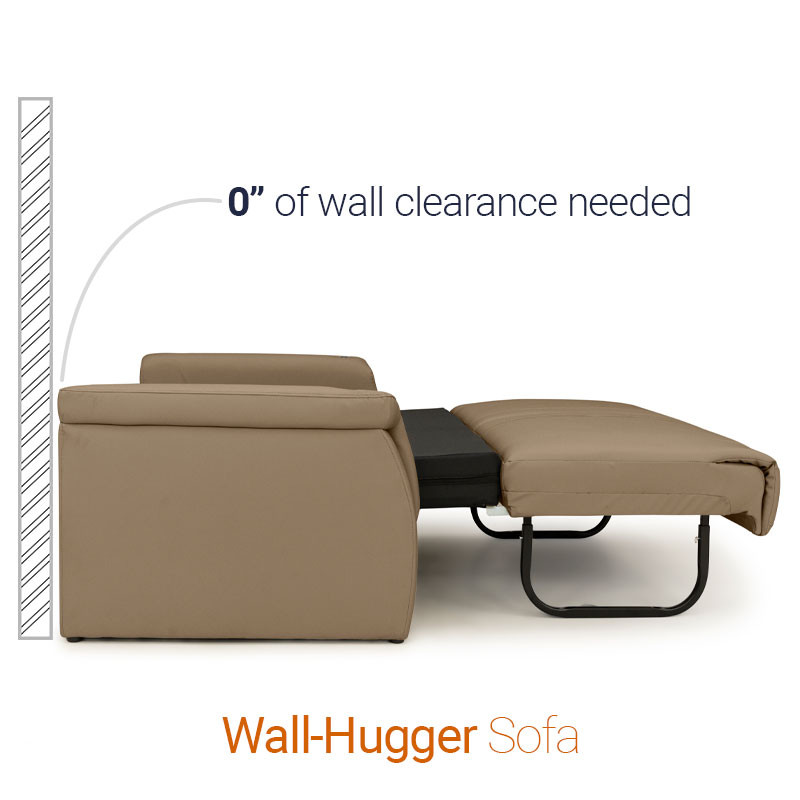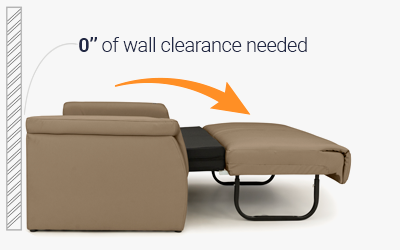 This sofa does not need any wall clearance to fold out the sofa bed.