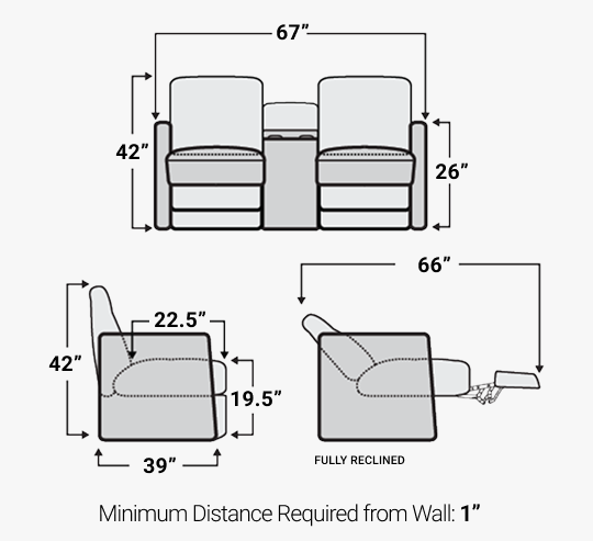 Maximize your space with this wall-hugger design needing only one inch clearance from the wall to open up.