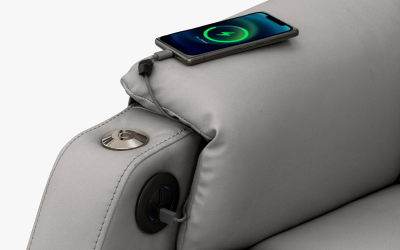 This sofa is equppied with charging ports in the armrests.