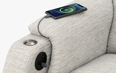 This sofa is equppied with charging ports in the armrests.