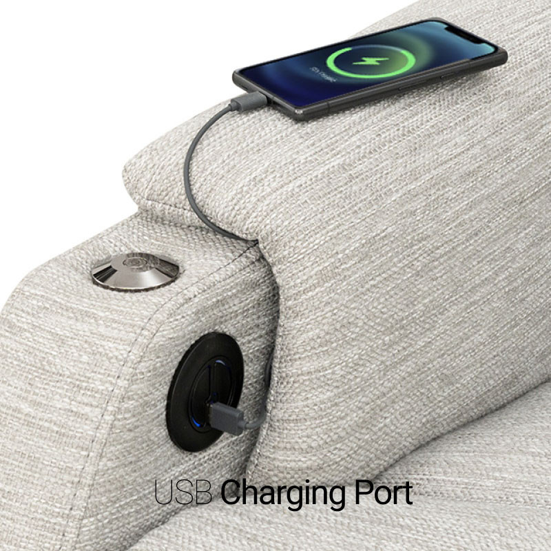 This sofa is equppied with charging ports in the armrests.
