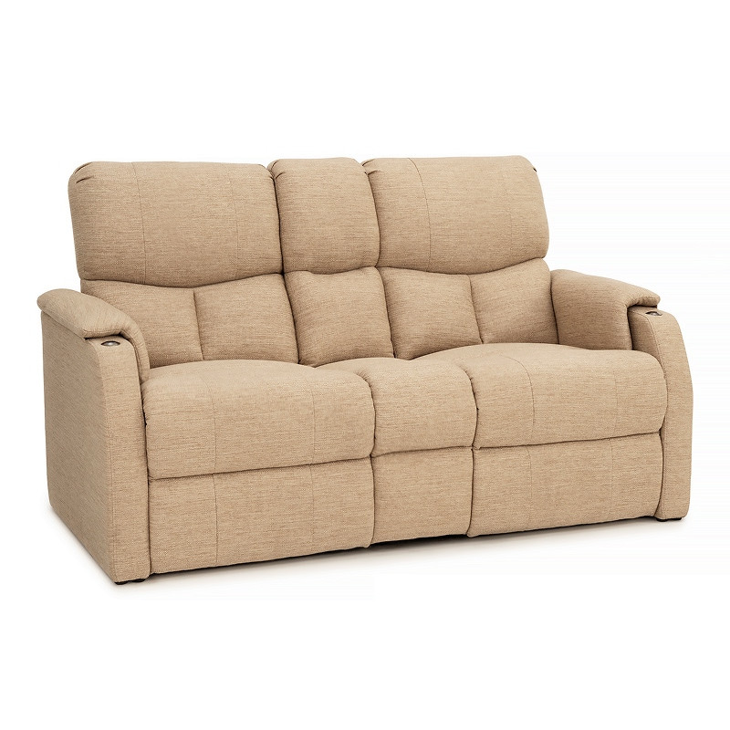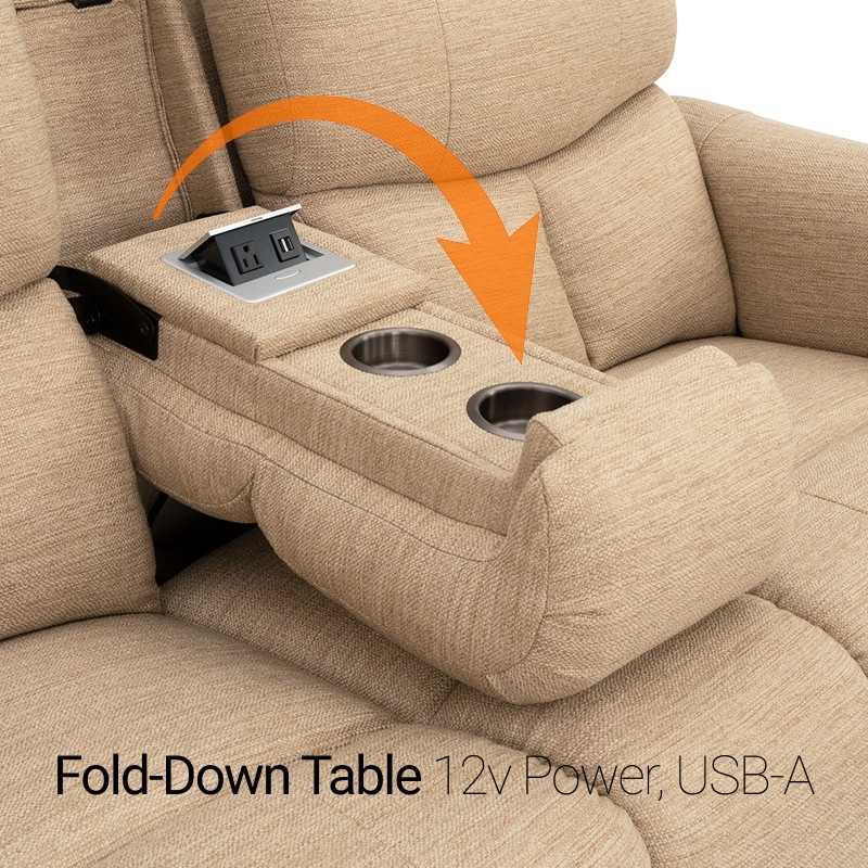 Experience a perfect blend of comfort and utility with the Qualitex Sedona RV Manual Double Recliner Sofa. This model features a manual reclining mechanism, offering reliable, effortless operation without the need for electrical hookups. Upholstered in premium Performance Fabric, the Sedona provides a breathable, high-durability finish that stays cool during your travels. The center fold-down table remains a functional tech hub with 12V power and USB-A ports to keep your devices charged, while the built-in accessory mount is ready for your favorite add-ons. Designed with a one-inch wall-hugger clearance, this manual fabric sofa is a dependable, lightweight upgrade for any RV interior.