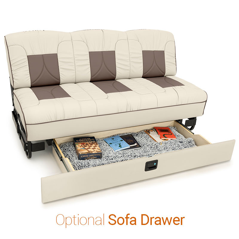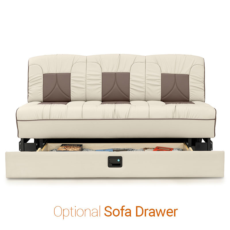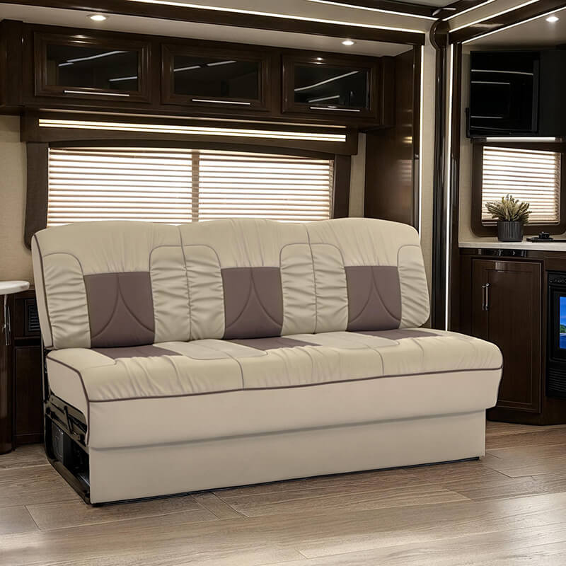 The De Leon sofa beds are designed to match the same Class-A standards as the De Leon series of RV captain’s chairs. They both boast the same plush feel for the utmost in comfort and durable construction. With its twin emphasis on luxury and quality, The De Leon RV sofa bed is quite simply the best.